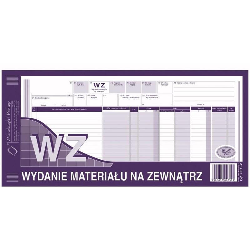 | Typ papieru | samokopiujący oryginał+kopia |